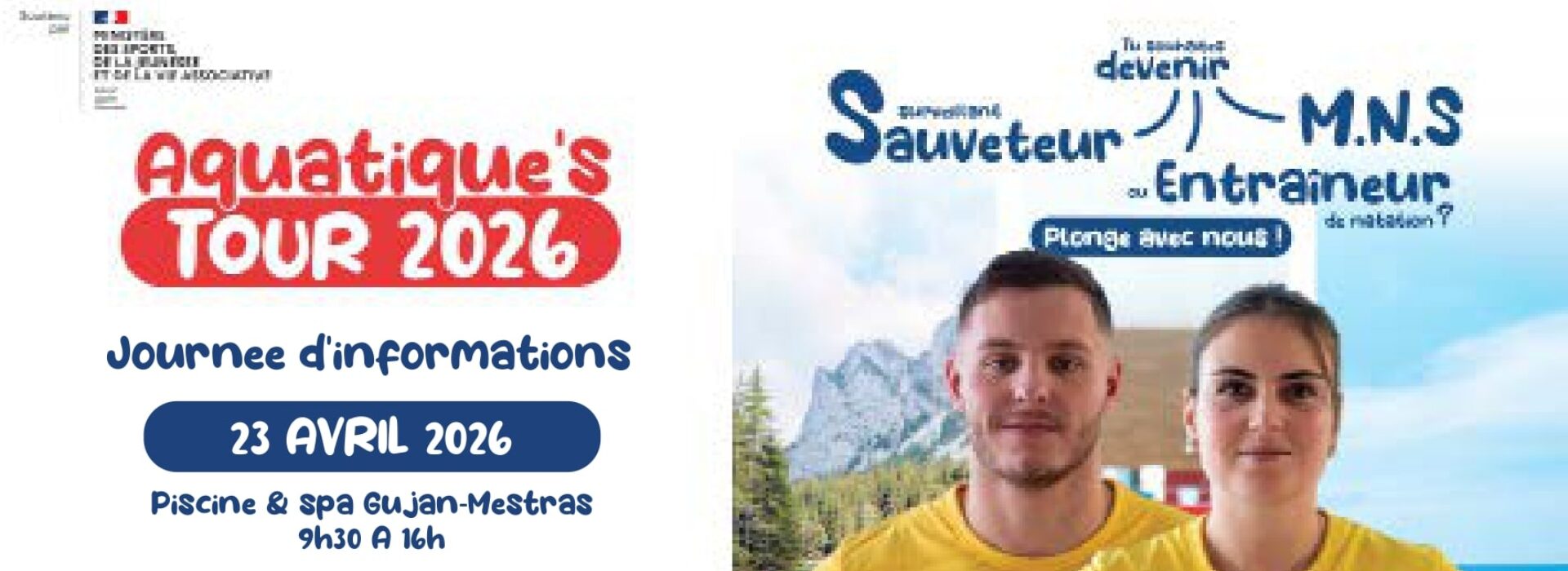 Le 23 avril, de 9h30 à 16h, la piscine et spa de Gujan-Mestras accueille une étape de l'Aquatique's Tour pour révéler les coulisses du métier de MNS. Au programme : découverte des métiers de Maître-Nageur Sauveteur, entraîneur et surveillant sauveteur, présentation des formations disponibles et des financements possibles, échanges avec des professionnels passionnés, et opportunités d'emploi à saisir. Ces animations permettront de mettre en lumière l'importance cruciale de cette profession dans le tissu social et la sécurité publique.